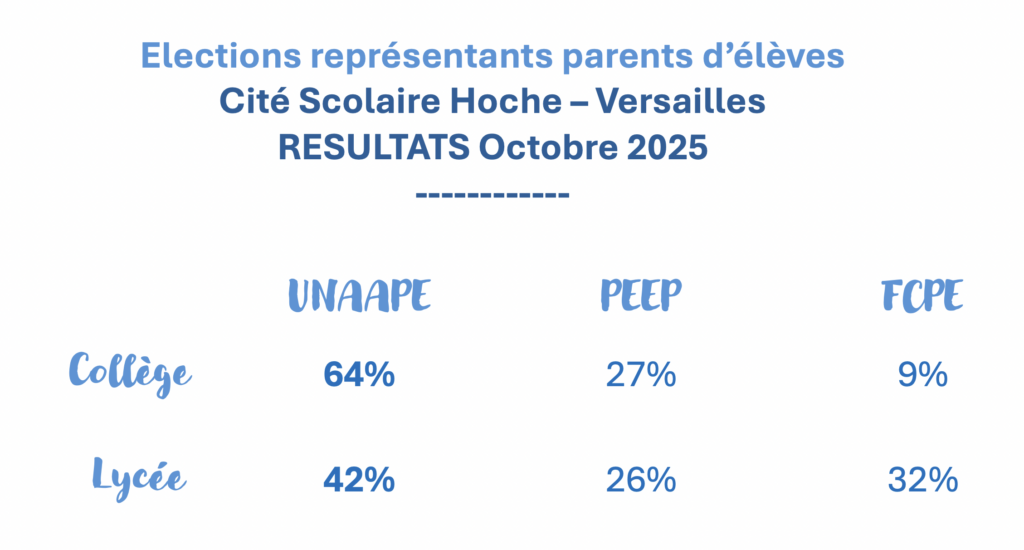 Première association de parents d’élèves dans la cité scolaire Hoche, l’UNAAPE Hoche est une équipe de plus de 150 adhérents d’adhérents, collège, lycée et classes préparatoires dont une centaine de représentants parents en 2025/2026.