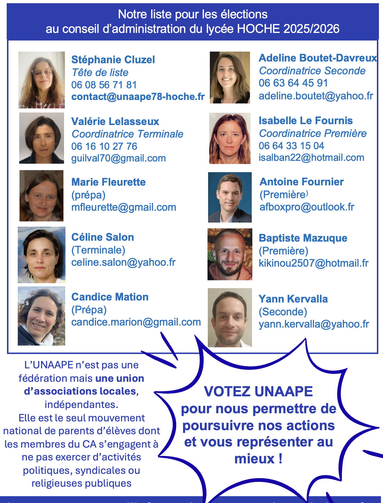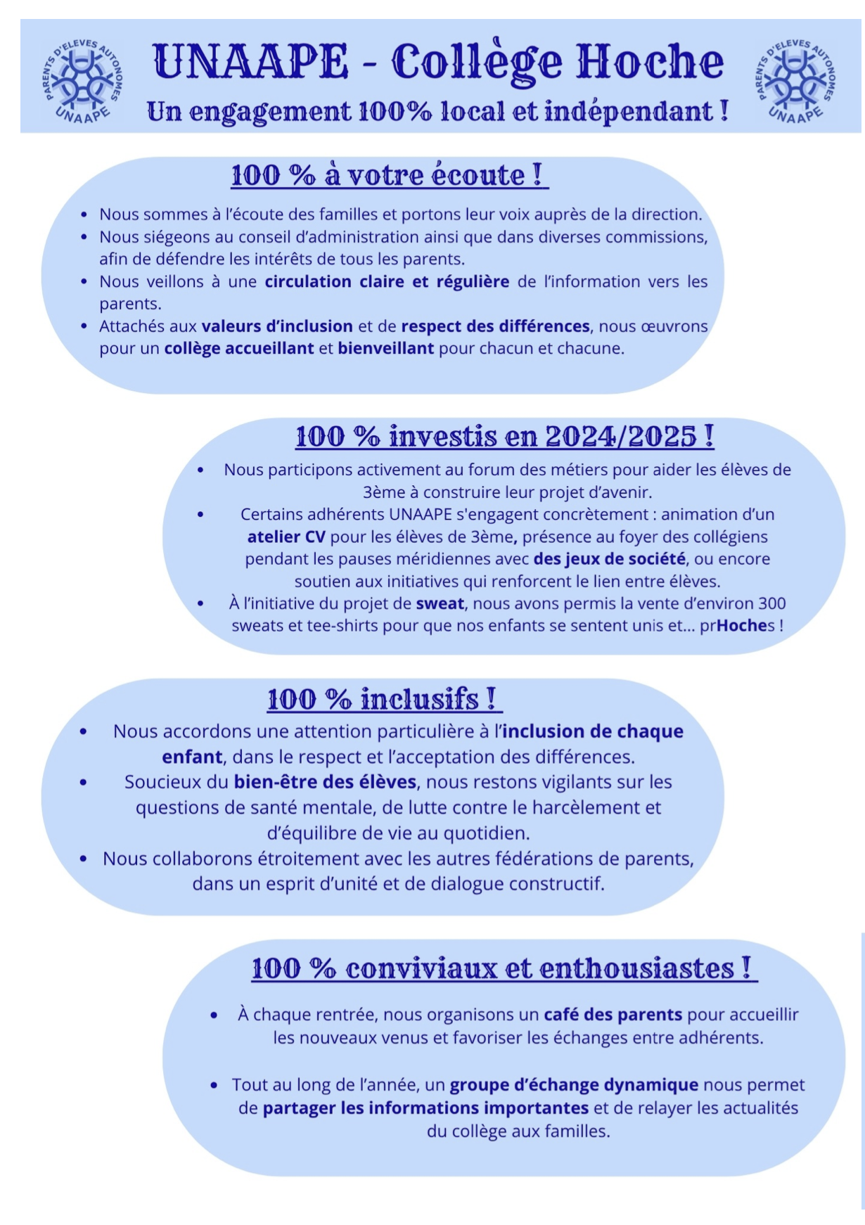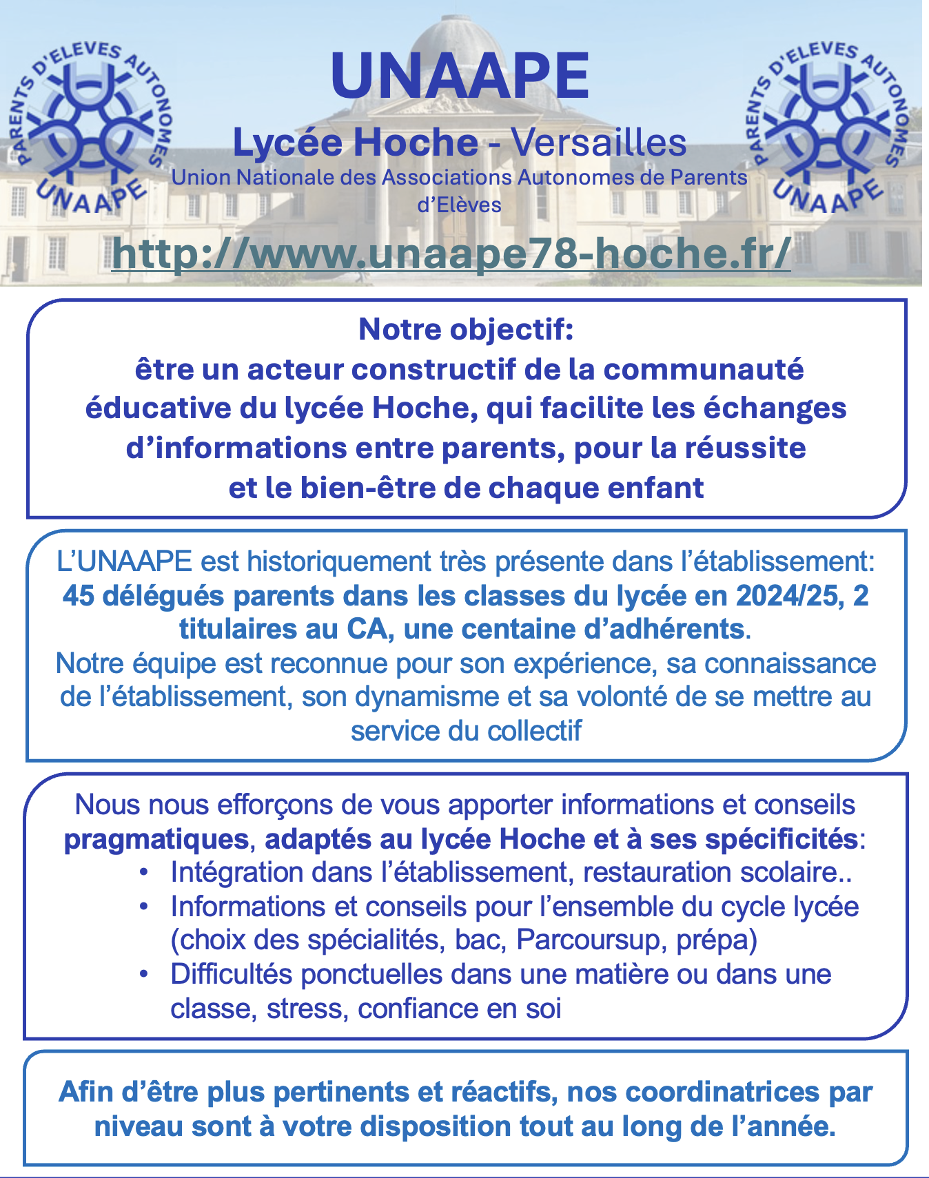 Du 7 au 11 octobre 2025, auront lieu les élections des représentants des parents d’élèves au conseil d’administration du collège et du lycée Hoche.