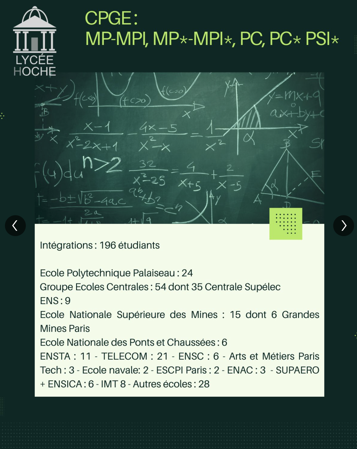 NB: Les visuels ci-dessus proviennent du site officiel du lycée Hoche et du compte Linkedin de Mme Chappe, proviseure de la cité scolaire Hoche